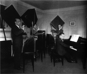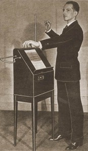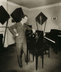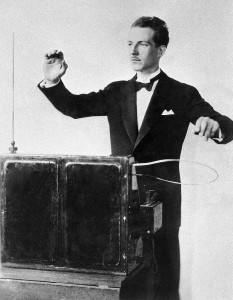 利昂·谢尔盖维奇·泰勒明的一生多少像是约翰·康威尔(John LeCarre)小说一样曲折。泰勒明1896年生于俄罗斯圣彼得堡,本应凭借他的泰勒明电声琴(Thereminvox,也就是泰勒明琴)成为早期电子音乐发展的重要人物之一。他在1920年发明了泰勒明琴原型机,并在之后的几年中一直从事着改进工作,期间,他从俄罗斯移民到美国纽约。1928年,他因发明获得了泰勒明琴的美国专利。在美国,他开办了一家工作室为上流社会提供宴食,从中赚取利润以继续研究。他在纽约的工作室配备了许多设备,以20世纪末期的眼光来看,这些装备简直就是来自于科幻小说:工作室里多种电子音频设备,还有光电表演、电子舞台,甚至还有一个彩色电视系统的原型设备。